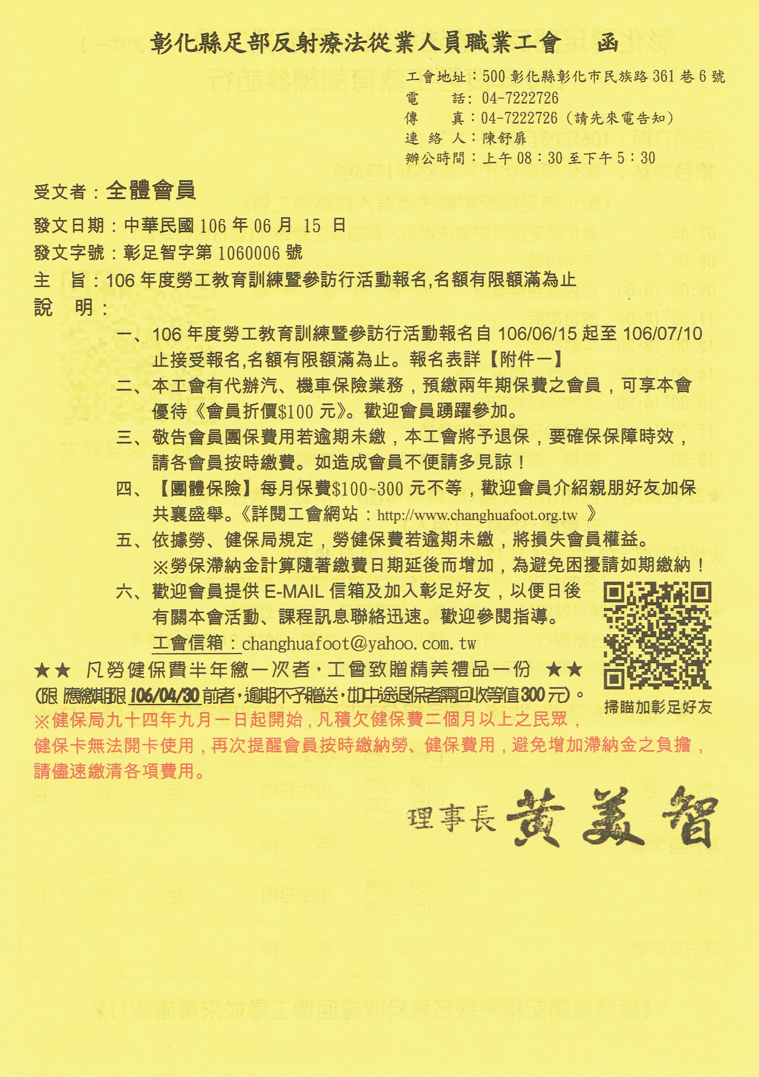 ※.對勞健保局調整保費如有疑問請向工會洽詢 TEL:(04)722-2726